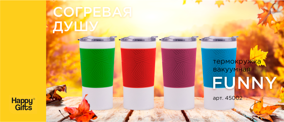 Осенью наше здоровье особенно нуждается в защите. Сильные порывы ветра забираются под пальто и шарфы, лужи от дождя словно ждут, когда в них наступит невнимательный прохожий, а короткий световой день вгоняет в тоску. Хочется ярких красок и согревающего организм напитка, который придаст бодрости и сил. И мы нашли идеальный антидепрессант! Вакуумная термокружка FUNNY (арт. 45002) сохраняет температуру горячих напитков до...